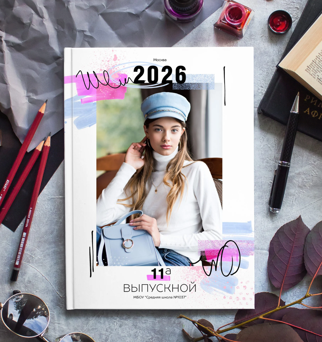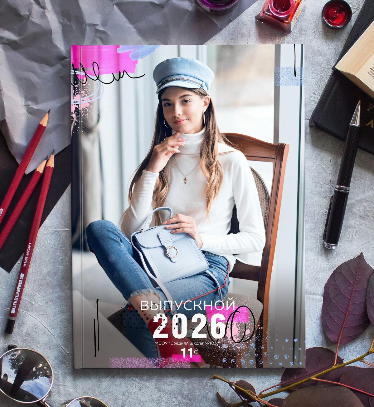 Варианты дизайнов для выпускных альбомов для старших классов.